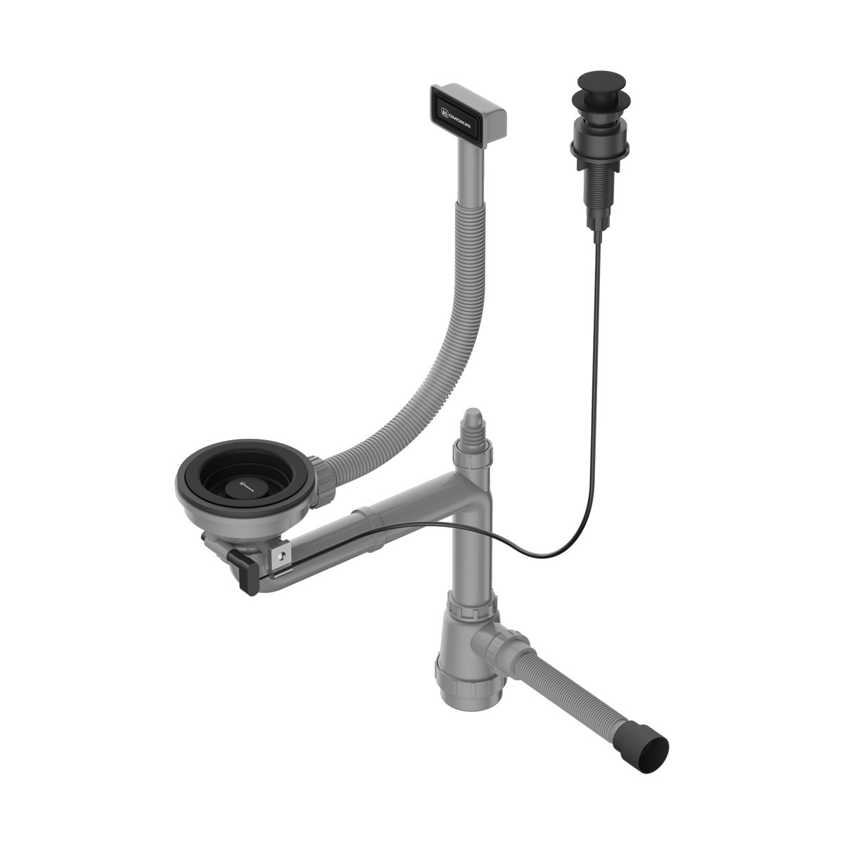 • Арматура с клапаном-автоматом для одночашевых моек с прямоугольным переливом и декоративным элементом для корзины;