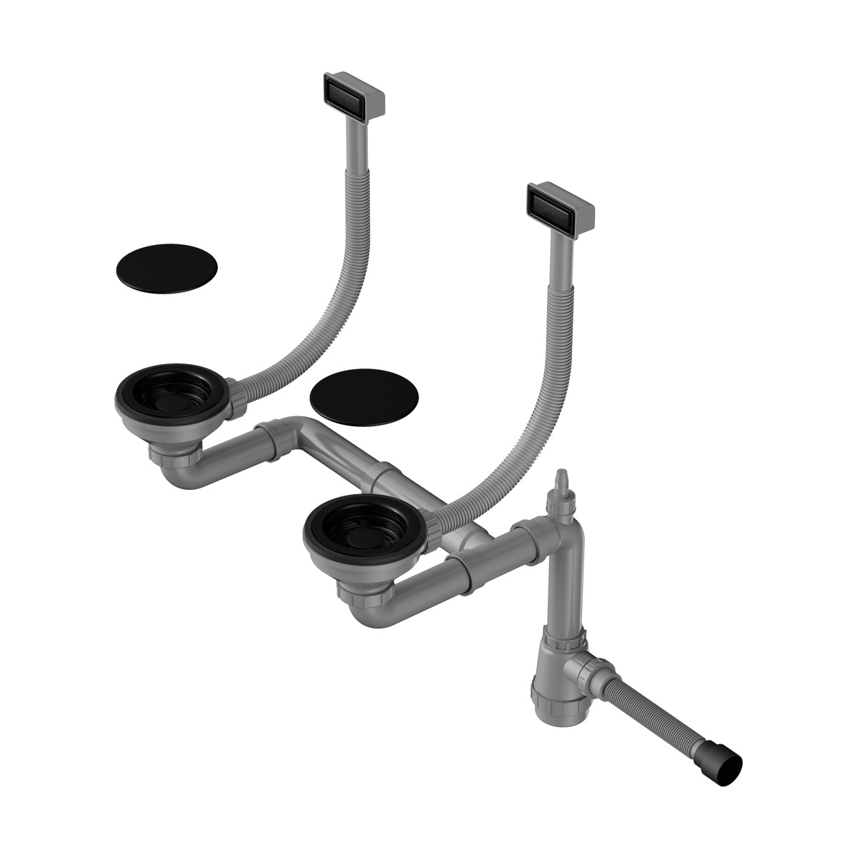 • Арматура для двухчашевых моек с прямоугольными переливами и декоративными элементами для корзины;