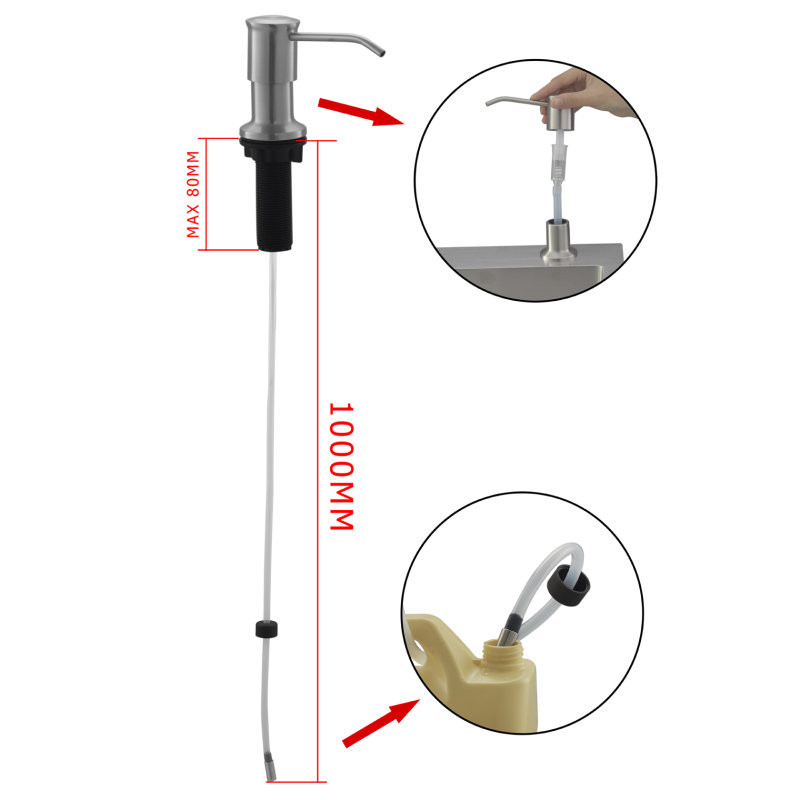 дозатор для кухонной мойки, без колбы, для забора жидкого моющего средства из иной ёмкости, H внешней части = 83 мм, D нажимного элемента = 38 мм