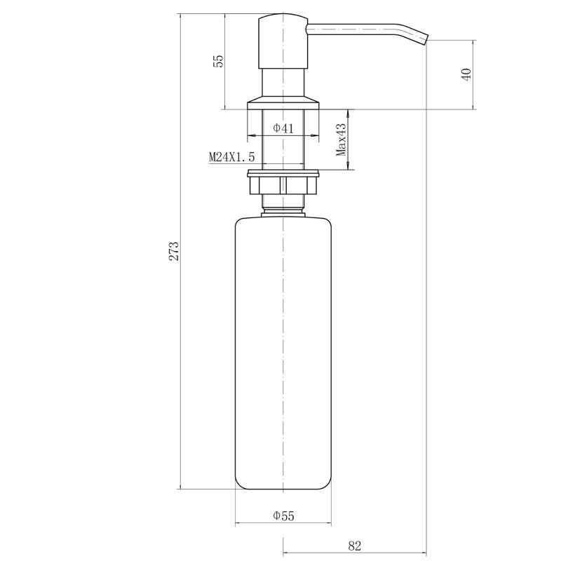 дозатор для кухонной мойки с колбой, Н=273 мм, H внешней части =55 мм, D нажимного элемента =26 мм