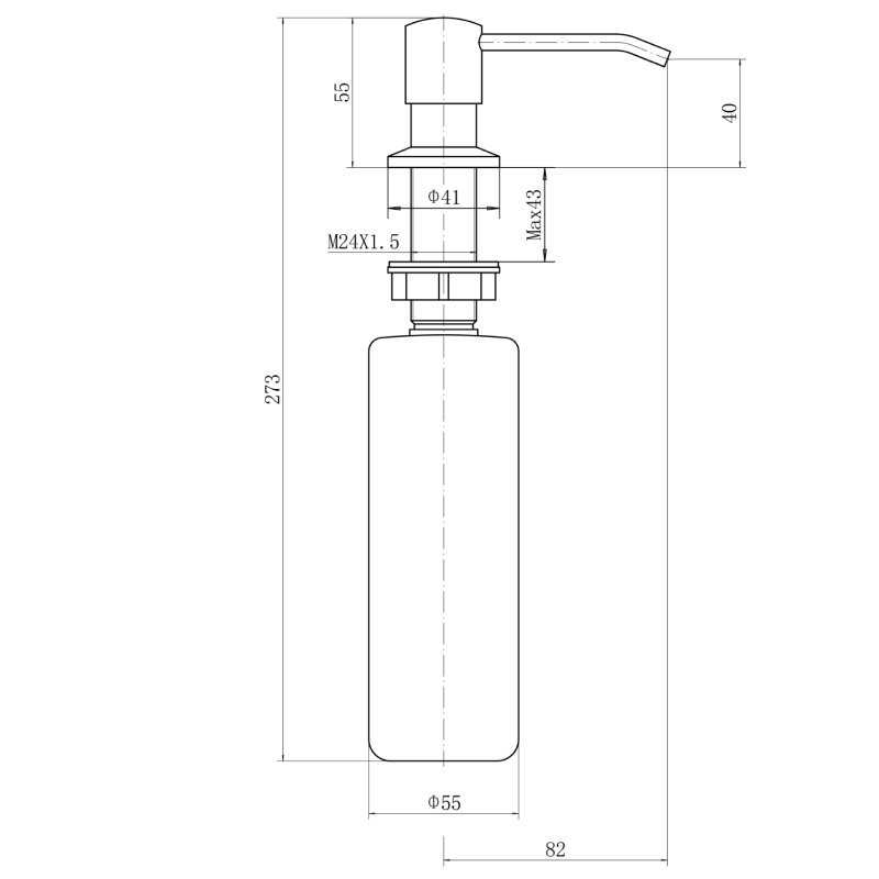 дозатор для кухонной мойки с колбой, Н=273 мм, H внешней части =55 мм, D нажимного элемента =26 мм