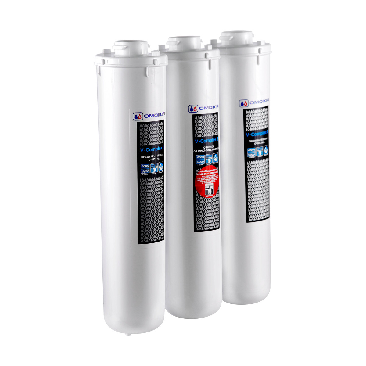 «V-Complex 2» производит очистку воды от микроорганизмов. Инновационная японская мембрана удаляет из воды абсолютно все бактерии без химических добавок. Мембрана «NanoTube» задерживает микроорганизмы внутри, пропуская чистую, безопасную для здоровья воду. Срок службы - 1 год.