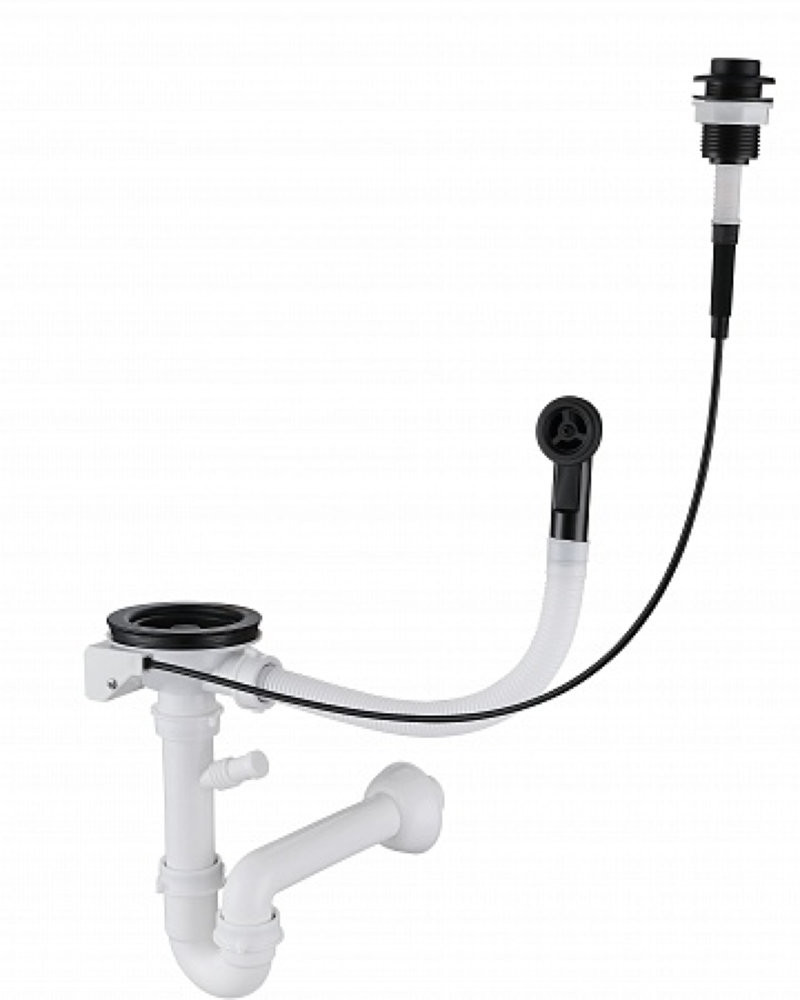 Сифон GranFest одинарный 3 1/2" черный п/авт с круглым переливом и отводом арт. GF-13PB2-P2 павт