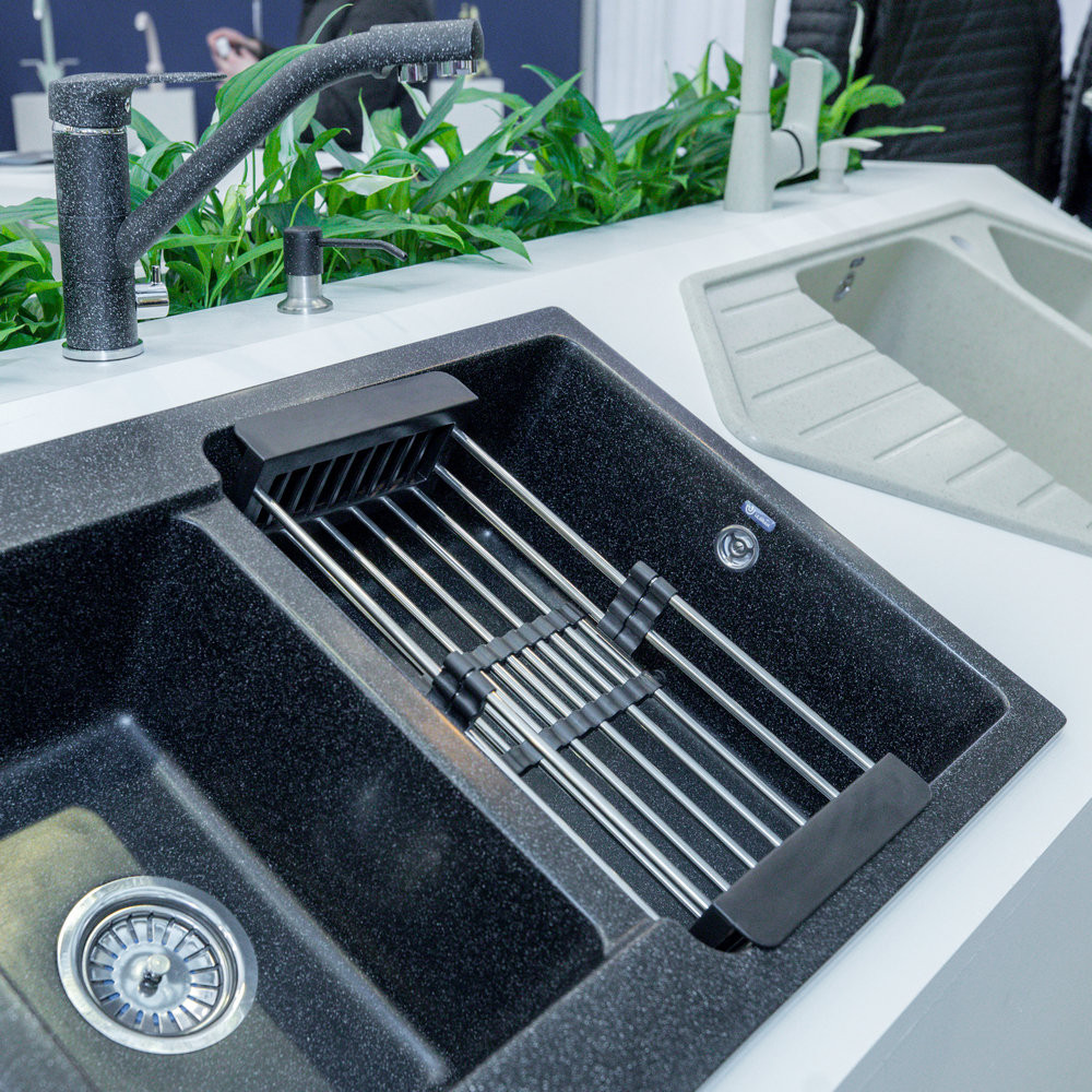 Универсальный коландер с телескопическими выдвижными направляющими из нержавеющей стали – популярный аксессуар в продуктовой линейке каменных моек ULGRAN, предназначенный для разморозки продуктов и мытья овощей и фруктов.
