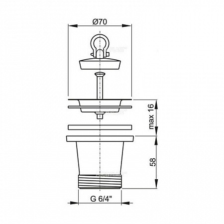 Водослив для мойки удлиненный 6/4" с нержавеющей peшeткой Ø70, арт. A34