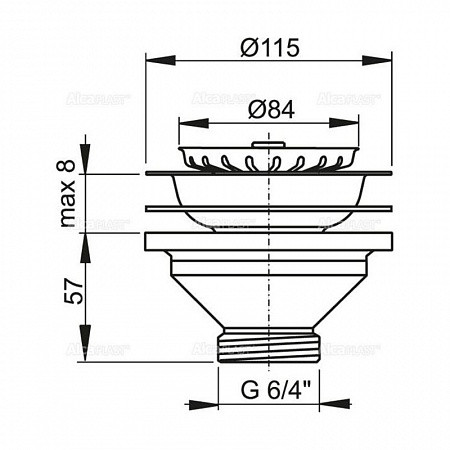 Водослив сифона для мойки 6/4" с нержавеющей peшeткой Ø115, арт. A37