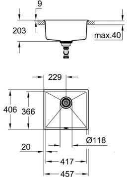 31653AT0 K700 Композитная мойка под столешницу,457 x 406, цвет серый гранит (AT0)