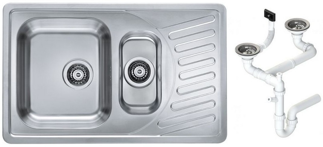 Alv 1009247 Elegant 110 Мойка I оборачиваема, 1+½ чаша, 0,7 мм, SAT, 3½, 810х510х190 мм+сифон шк 600