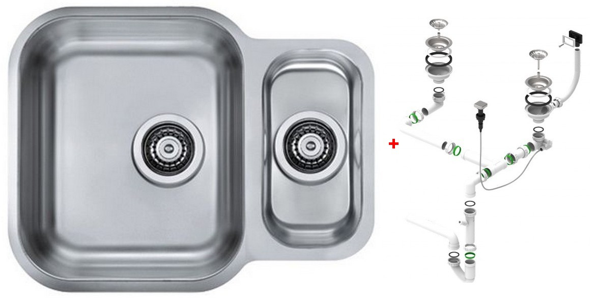 Alv 1039363 Duo 70 Мойка под стол, 1+½ чаши, 0,8 мм, SAT, 3½" 560х440х180 мм + сифон 1127257, шк 600