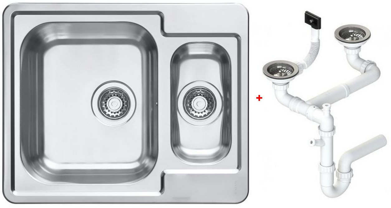 Alv 1089612 Line Maxim 50 Мойка I обор, 1½ чаши, 0,8 мм, SAT, 3½", 615х500х190 мм+сиф 1130555 шк 600