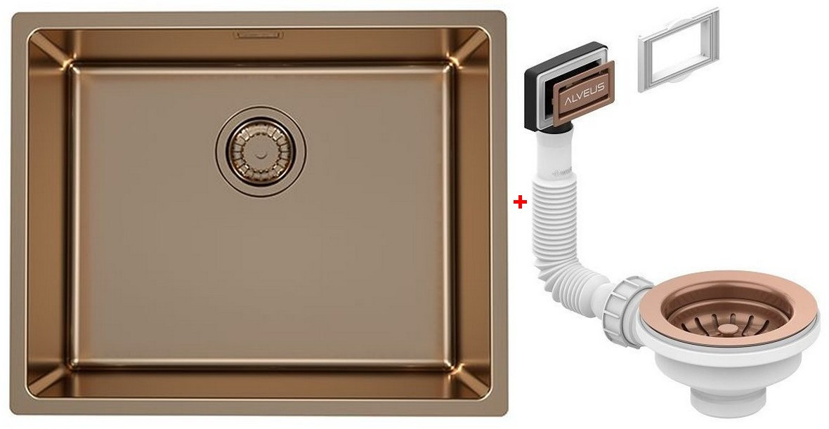 Alv 1120381 Kombino 50 Mon Copp Мойка U, r15, 1 чаша, 1 мм, SAT, 3½", 542х442х195 мм+выпуск шк 600