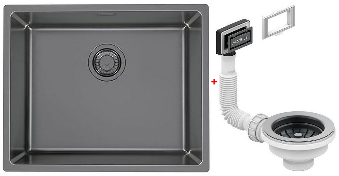 Alv 1122673 Kombino 50 Mon Ant Мойка U, r15, 1 чаша, 1 мм, SAT, 3½", 542х442х195 мм+выпуск шк 600