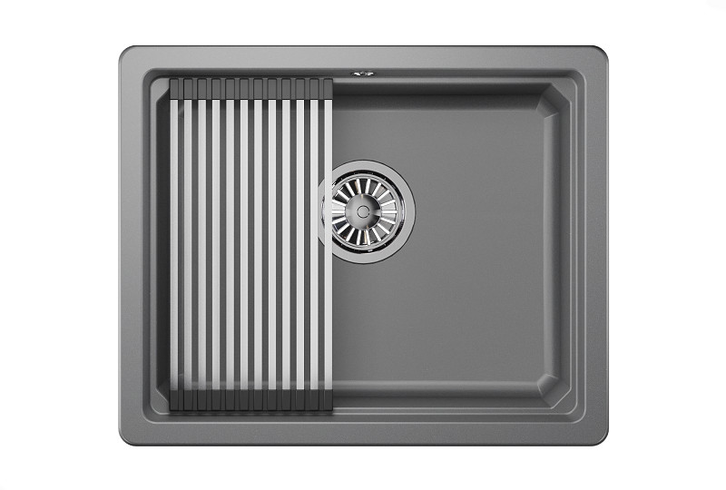 Мойка российского производителя Granula. Односекционная кухонная мойка прямоугольной формы 550х450 мм для установки под столешницу в шкаф 600мм. Представляет собой инновационный комплекс с удобной площадкой внутри чаши для установки ролл-мата или разделочной доски. Выполнена из кварцевого композитного материала высокой плотности и гигроскопичности, что обеспечивает не менее 20 лет надежной эксплуатации. Ролл-мат и дозатор из нержавеющей стали идут в комплекте.