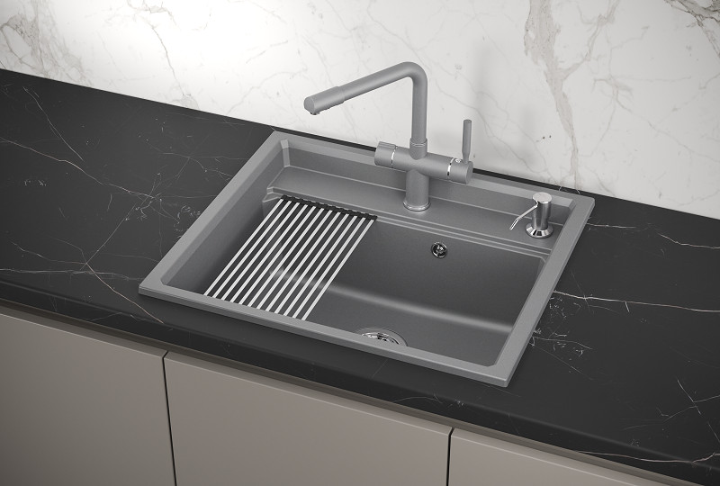 Мойка российского производителя Granula - Вместительная и функциональная чаша, удобная в использовании и простая в уходе! Изготовлена из кварцевого песка и устойчива к царапинам, абразивам, а также к механическим ударам. Форма чаши адаптирована под функциональный ролл-мат. Легко моется и не боится пятен. Устойчива к высоким температурам и идеально прилегает к столешнице. Гарантия - 5 лет! Данная модель представлена в 4-х цветах и содержит в комплекте: ролл-мат, дозатор жидкого мыла выполненный из нержавеющей стали, сифон (слив, перелив), инструкцию и гарантийных талон. Упакована в фирменный картонный короб.