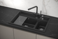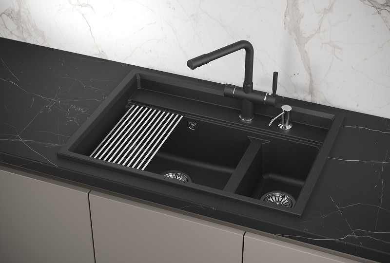 Мойка российского производителя Granula. Мойка Granula с двумя чашами - основная широкая и вместительная, другая более узкая и служит отсеком для ополаскивания фруктов и овощей, а также для замачивания грязной мелкой посуды. Простая в уходе, функциональная и очень удобная! Изготовлена из кварцевого песка и устойчива к царапинам, абразивам, а также к механическим ударам. Форма чаши адаптирована под функциональный ролл-мат. Легко моется и не боится пятен. Устойчива к высоким температурам и идеально прилегает к столешнице. Гарантия - 5 лет! Данная модель представлена в 4-х цветах и содержит в комплекте: ролл-мат, дозатор жидкого мыла выполненный из нержавеющей стали, сифон (слив, перелив), инструкцию и гарантийных талон. Упакована в фирменный картонный короб.