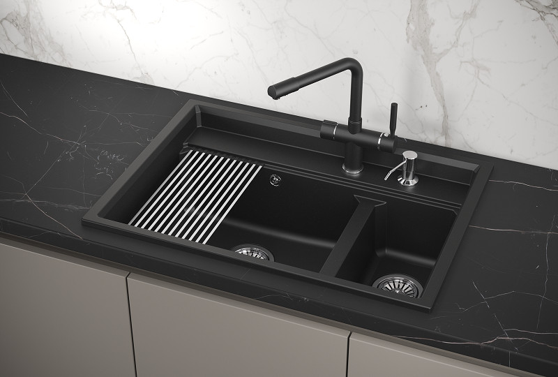 Мойка российского производителя Granula. Мойка Granula с двумя чашами - основная широкая и вместительная, другая более узкая и служит отсеком для ополаскивания фруктов и овощей, а также для замачивания грязной мелкой посуды. Простая в уходе, функциональная и очень удобная! Изготовлена из кварцевого песка и устойчива к царапинам, абразивам, а также к механическим ударам. Форма чаши адаптирована под функциональный ролл-мат. Легко моется и не боится пятен. Устойчива к высоким температурам и идеально прилегает к столешнице. Гарантия - 5 лет! Данная модель представлена в 4-х цветах и содержит в комплекте: ролл-мат, дозатор жидкого мыла выполненный из нержавеющей стали, сифон (слив, перелив), инструкцию и гарантийных талон. Упакована в фирменный картонный короб.