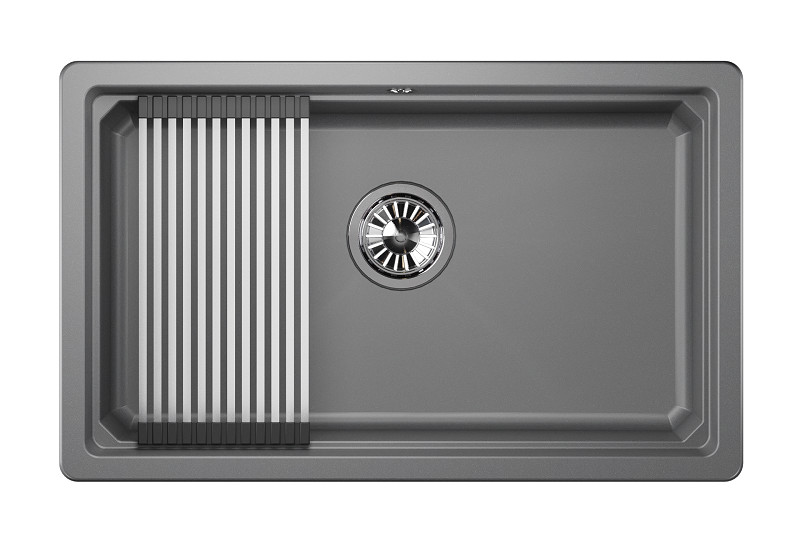 Мойка российского производителя Granula. Односекционная кухонная мойка вытянутой прямоугольной формы 730х450 мм для установки под столешницу в шкаф 800 мм. Такая форма поможет легко справиться с большим объемом посуды, а установка под столешницу позволит идеально вписаться в любой современный интерьер. Представляет собой инновационный комплекс с удобной площадкой внутри чаши для установки ролл-мата или разделочной доски. Выполнена из кварцевого композитного материала высокой плотности и гигроскопичности, что обеспечивает не менее 20 лет надежной эксплуатации. Ролл-мат и дозатор из нержавеющей стали идут в комплекте.