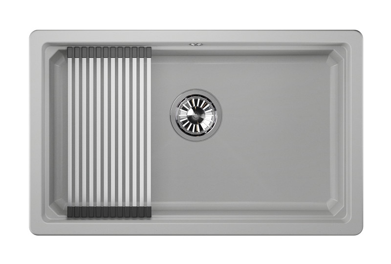 Мойка российского производителя Granula. Односекционная кухонная мойка вытянутой прямоугольной формы 730х450 мм для установки под столешницу в шкаф 800 мм. Такая форма поможет легко справиться с большим объемом посуды, а установка под столешницу позволит идеально вписаться в любой современный интерьер. Представляет собой инновационный комплекс с удобной площадкой внутри чаши для установки ролл-мата или разделочной доски. Выполнена из кварцевого композитного материала высокой плотности и гигроскопичности, что обеспечивает не менее 20 лет надежной эксплуатации. Ролл-мат и дозатор из нержавеющей стали идут в комплекте.