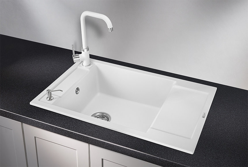 Мойка с оригинальным дизайнерским решением: площадка для смесителя/дозатора расположена сбоку, что позволяет расширить функции и эргономику модели. Модель представлена в 10-и цветах.