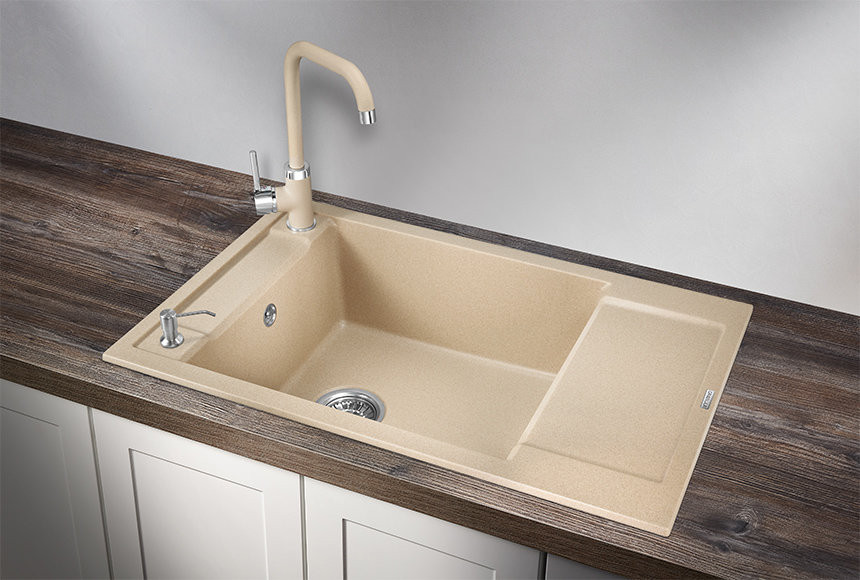 Мойка с оригинальным дизайнерским решением: площадка для смесителя/дозатора расположена сбоку, что позволяет расширить функции и эргономику модели. Модель представлена в 10-и цветах.