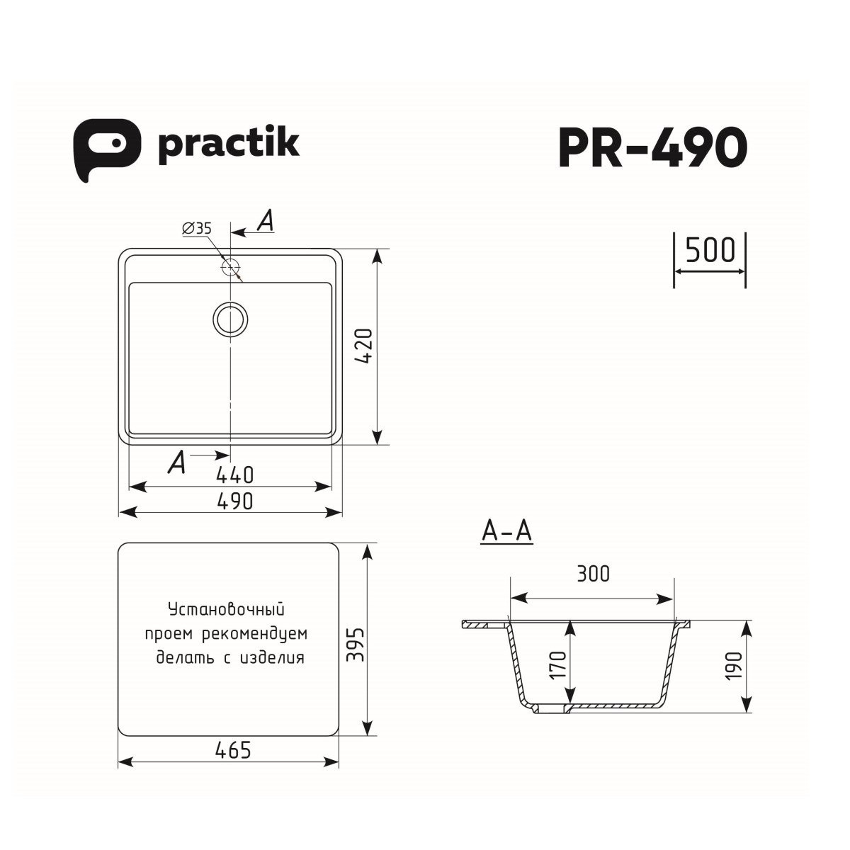 Кухонная мойка Practik PR-M-490-004 (без сифона), черный оникс