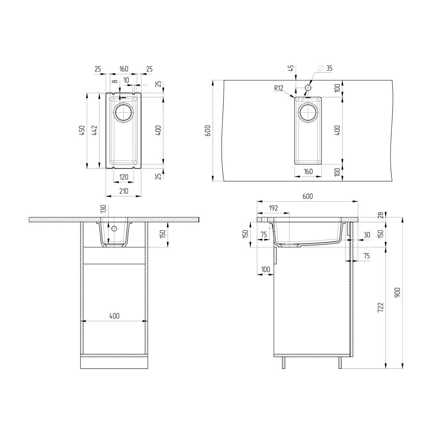 Кухонная мойка ULGRAN Quartz Underground 160 – это односекционая модель подстольного монтажа, изготовленная на современном автоматизированном оборудовании из высококачественных кварцевых композитов по инжекционной технологии (литье под давлением).