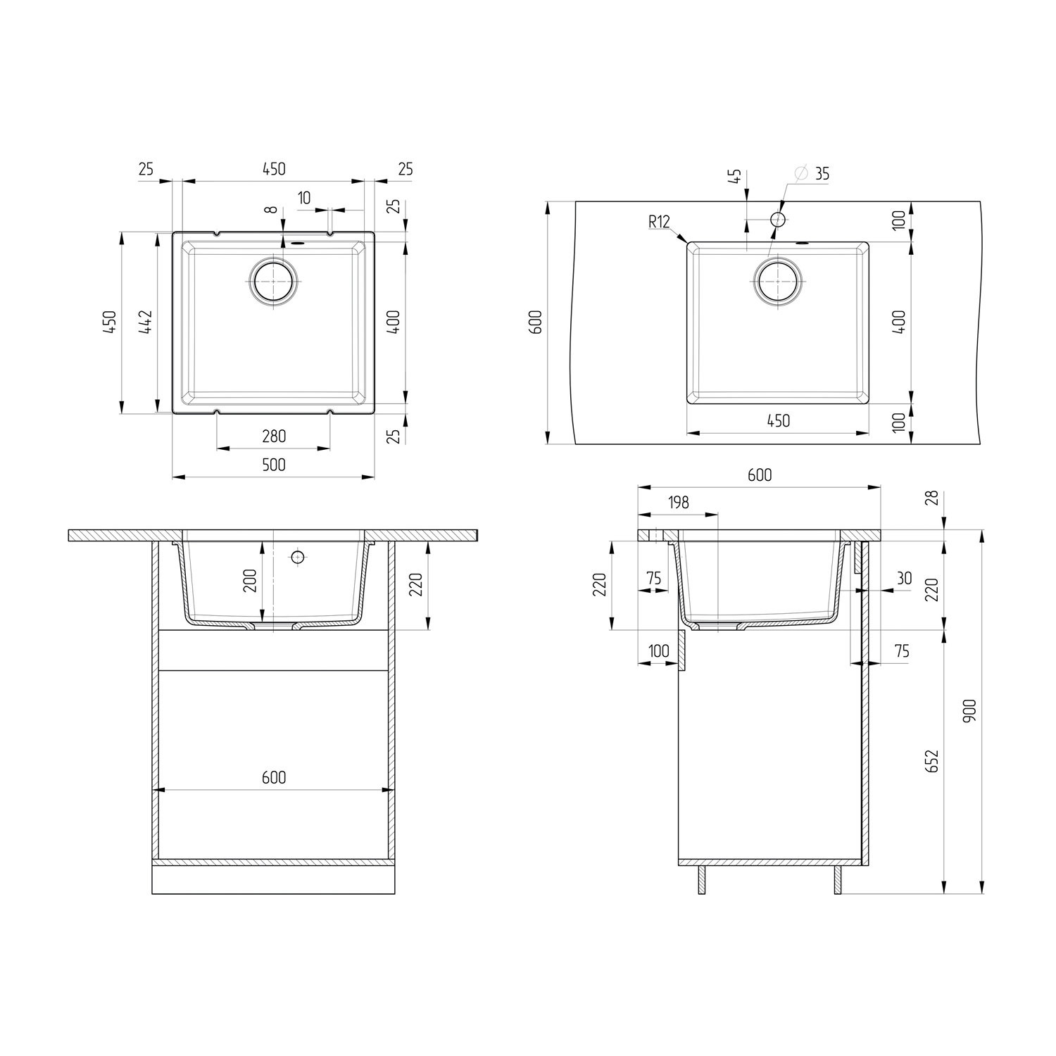 Кухонная мойка ULGRAN Quartz Underground 450 – это односекционая модель подстольного монтажа, изготовленная на современном автоматизированном оборудовании из высококачественных кварцевых композитов по инжекционной технологии (литье под давлением). Кварцевый композит является поистине инновационным материалом в производстве кухонных моек! Он сочетает в себе такие неоспоримые преимущества как повышенная влагостойкость и термостойкость, возможность придать мойке при изготовлении практичный и функциональный дизайн, увеличенное сопротивление внешнему износу, снижение уровня шума при падении струи воды, безусловная гигиеничность и простота в уходе, а также сравнительно малый вес при высокой прочности. Мойка устанавливается в кухонный шкаф шириной от 60 см.