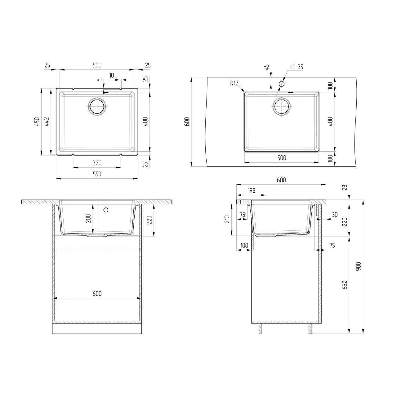 Кухонная мойка ULGRAN Quartz Underground 500 – это односекционая модель подстольного монтажа, изготовленная на современном автоматизированном оборудовании из высококачественных кварцевых композитов по инжекционной технологии (литье под давлением). Кварцевый композит является поистине инновационным материалом в производстве кухонных моек! Он сочетает в себе такие неоспоримые преимущества как повышенная влагостойкость и термостойкость, возможность придать мойке при изготовлении практичный и функциональный дизайн, увеличенное сопротивление внешнему износу, снижение уровня шума при падении струи воды, безусловная гигиеничность и простота в уходе, а также сравнительно малый вес при высокой прочности. Мойка устанавливается в кухонный шкаф шириной от 60 см.