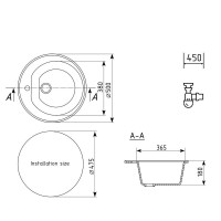 ULGRAN U-101 - классическая круглая кухонная мойка с отверстием под смеситель. Данная мойка устанавливается в шкаф шириной от 45 см и прекрасно подходит для малогабаритной кухни. В комплектацию входит сливная арматура с гофротрубой, технический паспорт и гарантийный талон. Существует возможность установки дозатора ULGRAN слева от смесителя - доп. отверстие в таком случае потребитель делает самостоятельно с помощью фрезы Форстнера (не входит в комплектацию и приобретается отдельно). Заводская гарантия составляет 2 года, а срок службы данной мойки, при соблюдении основных правил ухода за ней, составляет более 10 лет.