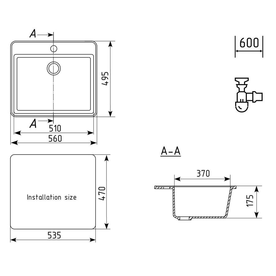 Комплектация: мойка, сливная арматура, корзинчатый вентиль, сифон;