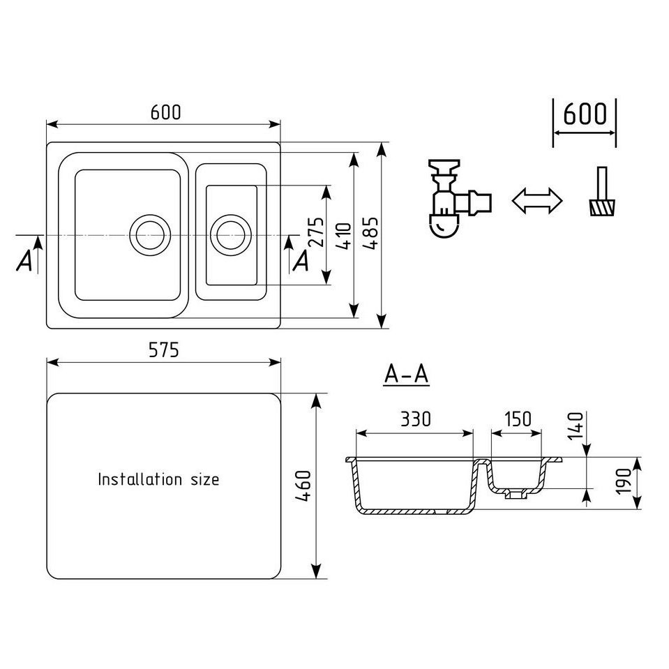 Комплектация: мойка, сливная арматура, корзинчатый вентиль, сифон;