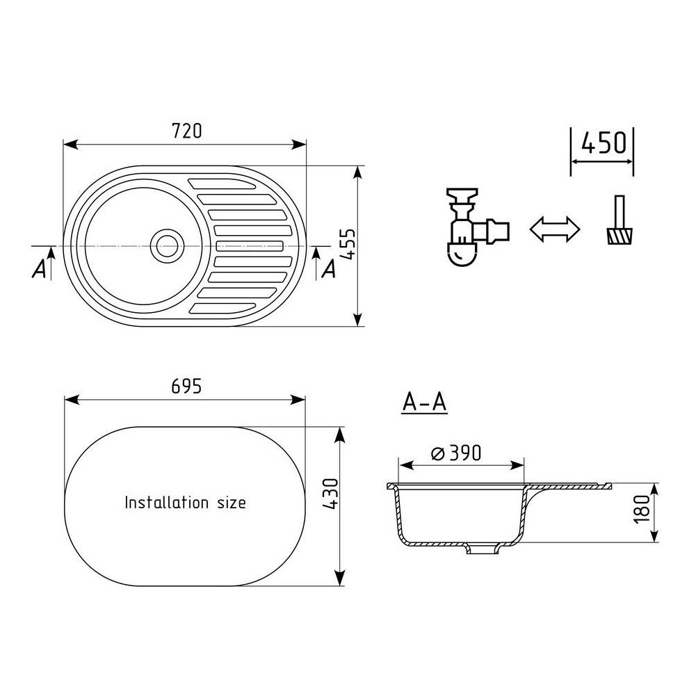 Комплектация: мойка, сливная арматура, корзинчатый вентиль, сифон;