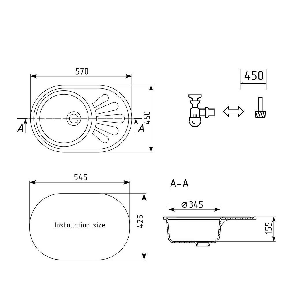 Комплектация: мойка, сливная арматура, корзинчатый вентиль, сифон;