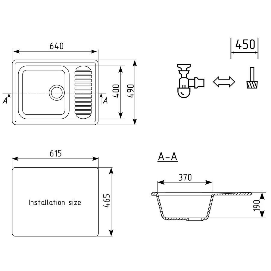 Комплектация: мойка, сливная арматура, корзинчатый вентиль, сифон;