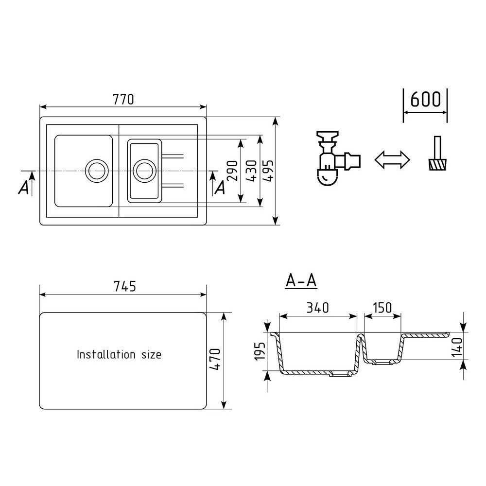 ULGRAN U-205 - двухсекционная реверсивная кухонная мойка, с основной чашей и коландером. Данная мойка устанавливается в шкаф шириной от 80 см и является оборачиваемой. В комплектацию входит сливная арматура с гофротрубой, технический паспорт и гарантийный талон. Существует возможность установки дозатора ULGRAN или других аксессуаров - доп. отверстие в таком случае потребитель делает самостоятельно с помощью фрезы Форстнера (не входит в комплектацию и приобретается отдельно). Заводская гарантия составляет 2 года, а срок службы данной мойки, при соблюдении основных правил ухода за ней, составляет более 10 лет.
