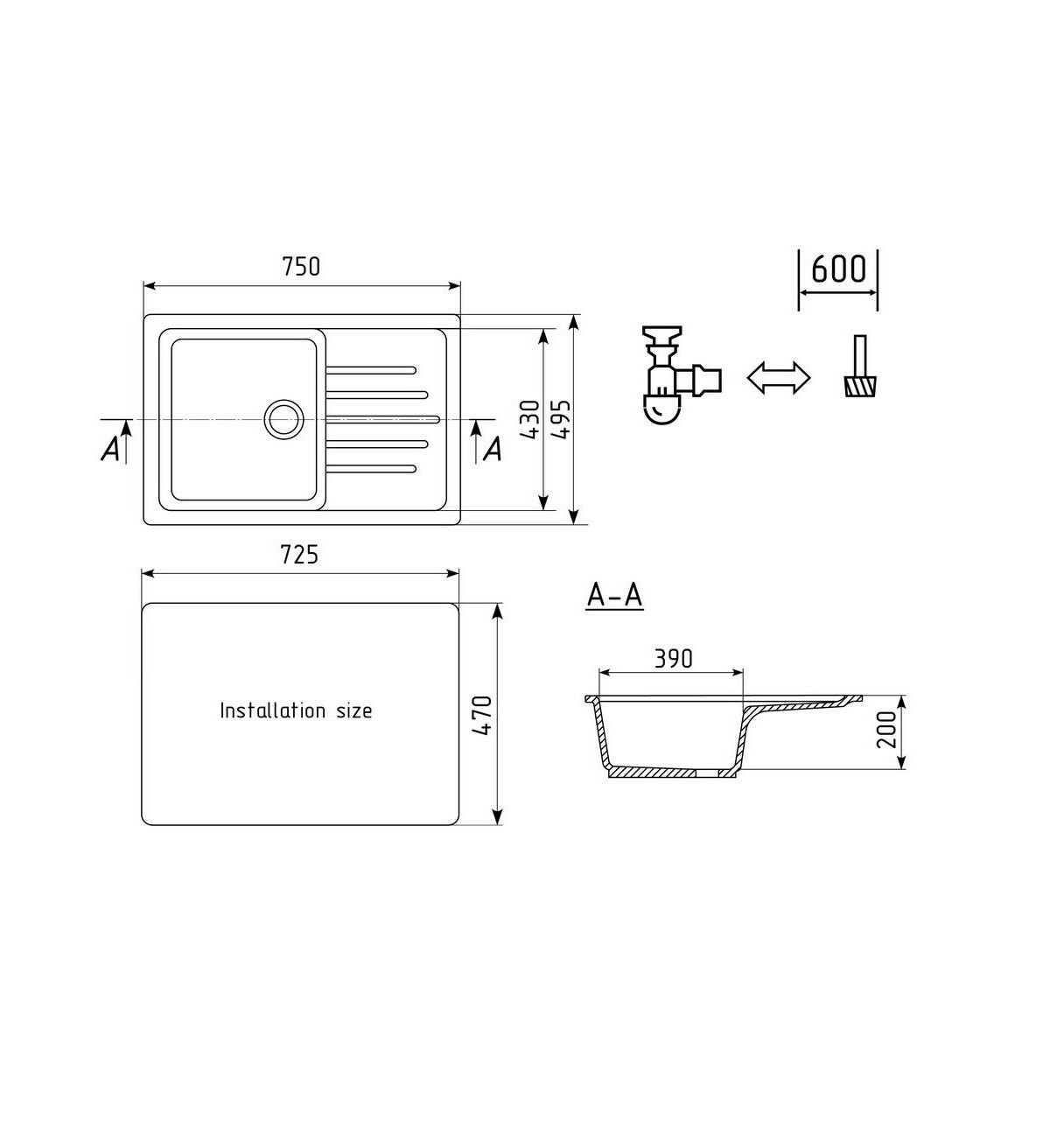 Комплектация: мойка, сливная арматура, корзинчатый вентиль, сифон;