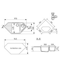 ULGRAN U-409 - двухсекционная угловая кухонная мойка с отверстием под смеситель, с основной чашей и коландером. В комплектацию входит сливная арматура с гофротрубой, технический паспорт и гарантийный талон. Существует возможность установки дозатора ULGRAN слева от смесителя - доп. отверстие в таком случае потребитель делает самостоятельно с помощью фрезы Форстнера (не входит в комплектацию и приобретается отдельно). Заводская гарантия составляет 2 года, а срок службы данной мойки, при соблюдении основных правил ухода за ней, составляет более 10 лет.