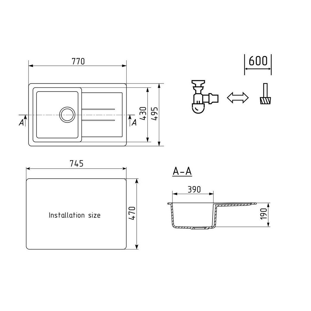 Комплектация: мойка, сливная арматура, корзинчатый вентиль, сифон;