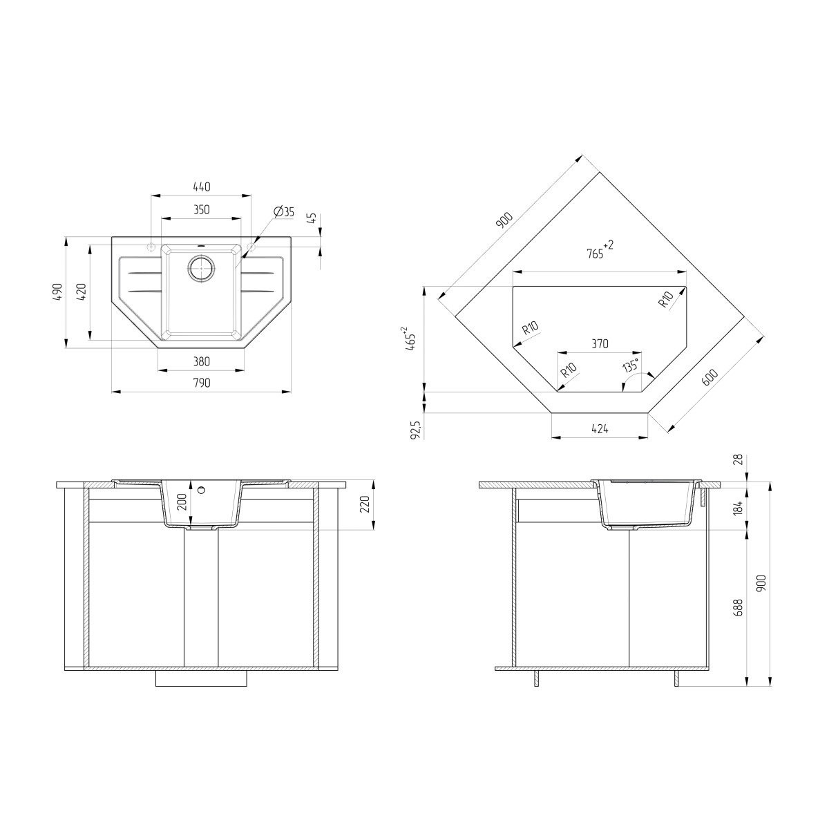 ULGRAN U-609 - односекционная реверсивная угловая кухонная мойка. В комплектацию входит сливная арматура с гофротрубой, технический паспорт и гарантийный талон. Существует возможность установки дозатора ULGRAN слева от смесителя - доп. отверстие в таком случае потребитель делает самостоятельно с помощью фрезы Форстнера (не входит в комплектацию и приобретается отдельно). Заводская гарантия составляет 2 года, а срок службы данной мойки, при соблюдении основных правил ухода за ней, составляет более 10 лет.
