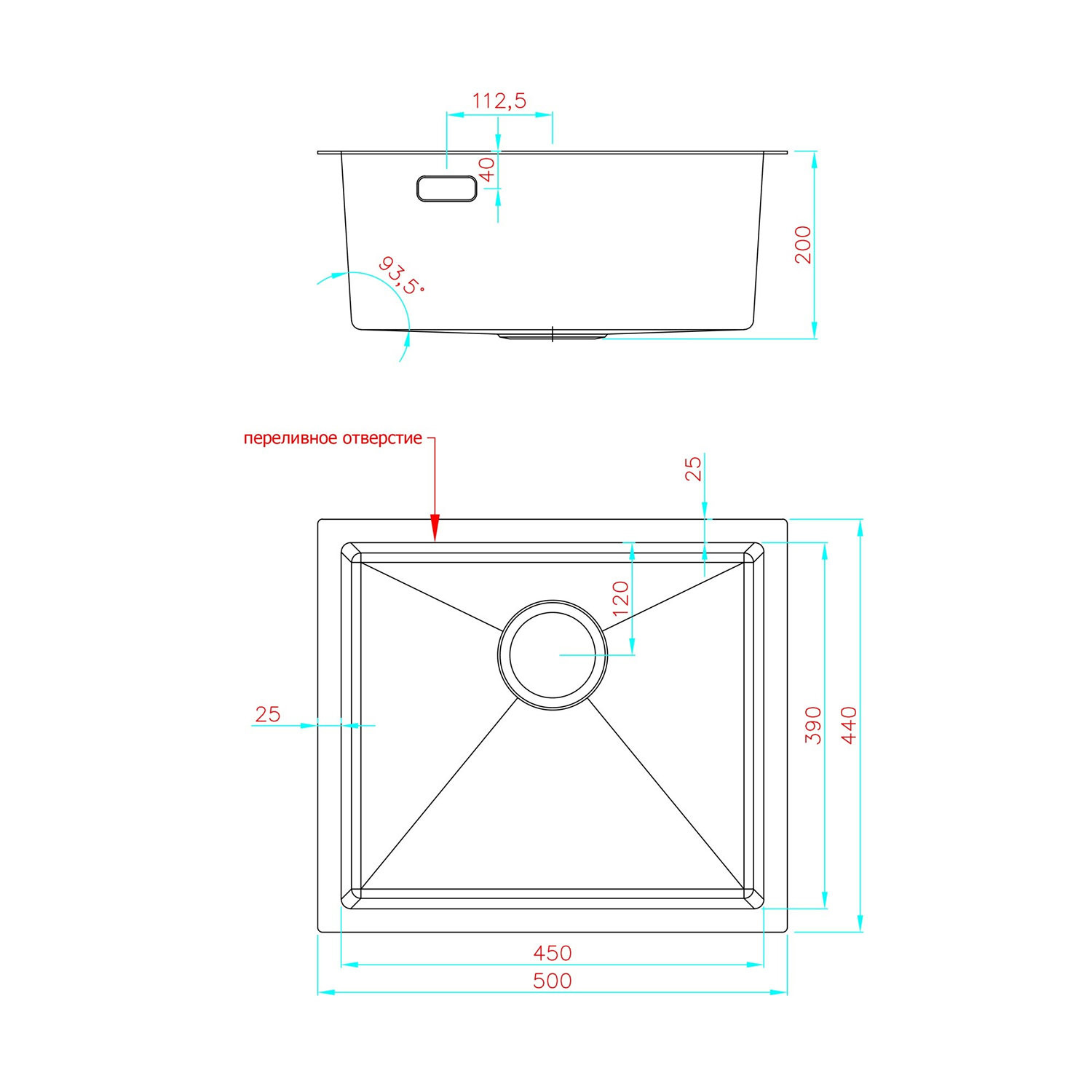Диаметр слива, см: 8;