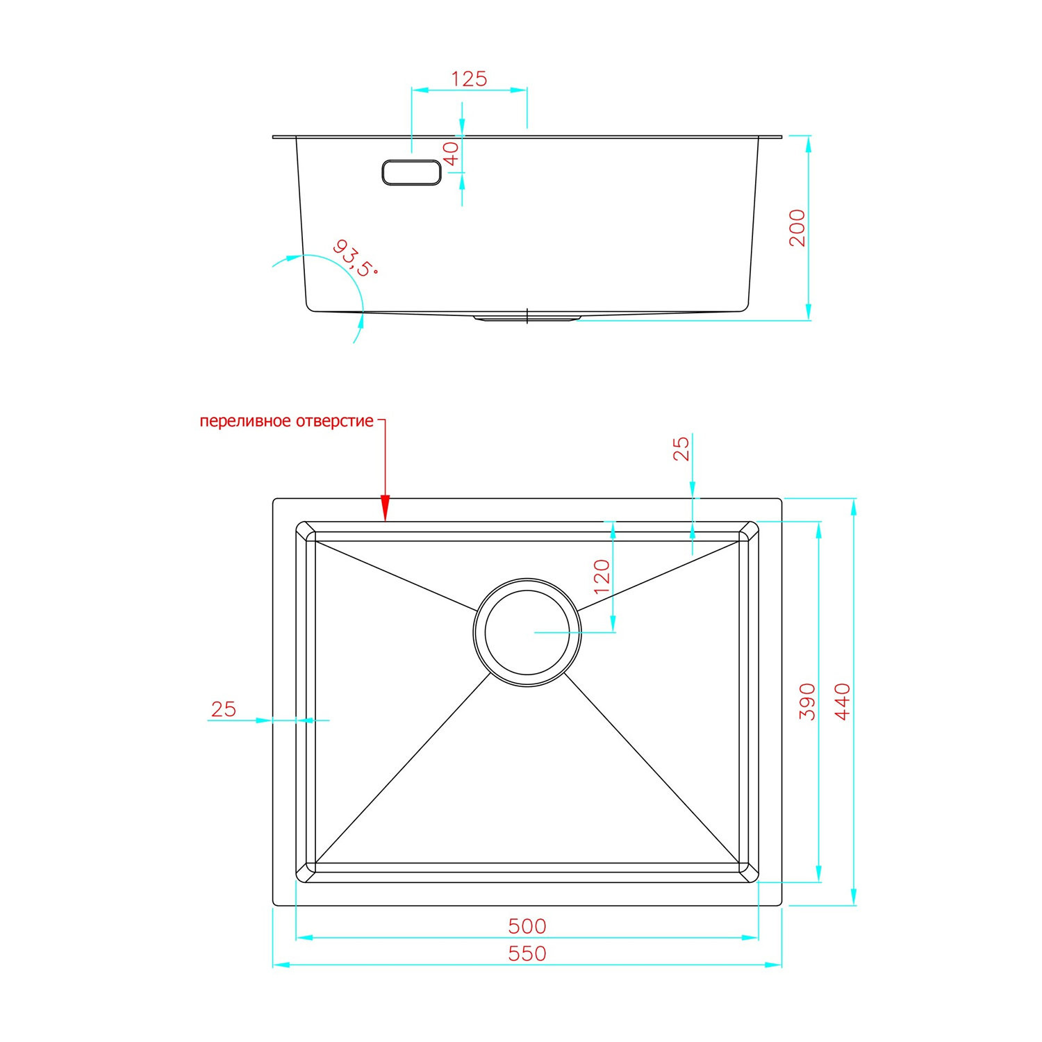 Диаметр слива, см: 8;