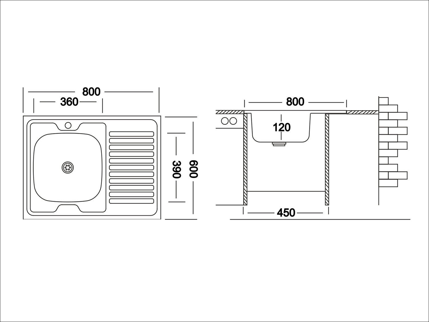 Намеченные отверстия под смеситель: нет;
