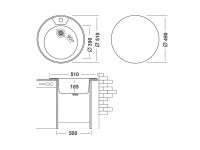 Модель врезного способа монтажа имеет размеры 510 мм в диаметре и предназначена для установки в тумбу от 45 см.