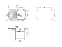 Модель врезного способа монтажа, имеет размеры 730х480 мм и предназначена для установки в тумбу от 45 см.