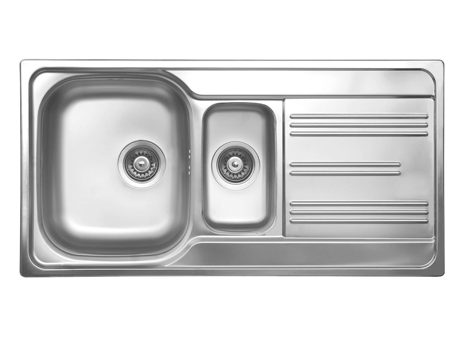 Модель врезного способа монтажа, имеет размеры 980×500 мм и предназначена для установки в тумбу от 60 см. Такая раковина идеально подойдет для просторных кухонь.