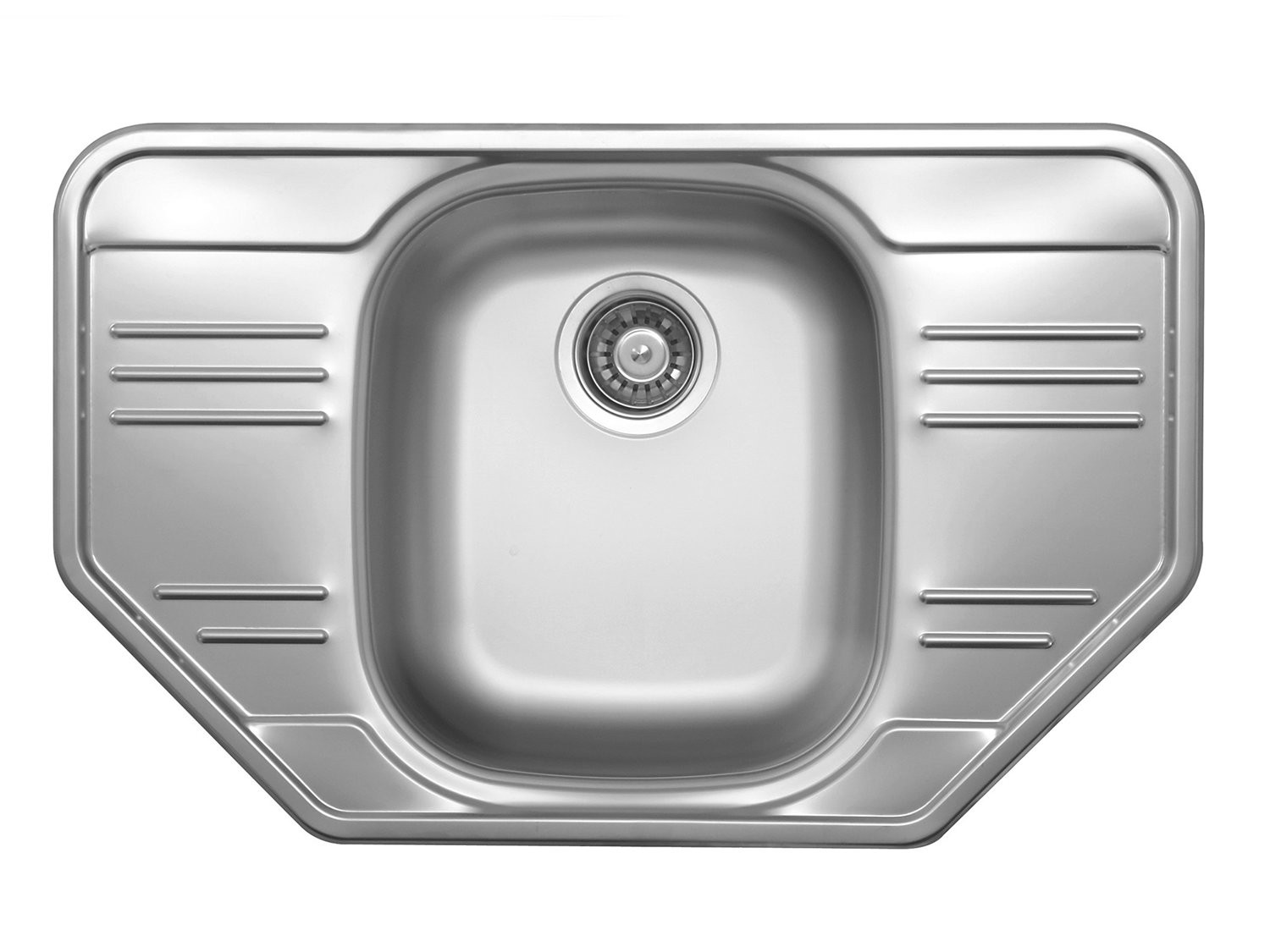 Кухонная мойка GRP780.490 в форме трапеции специально произведена для помещений с необычной планировкой. Оригинальная модель от UKINOX идеально впишется в моечную зону, расположенную в углу. Нестандартный дизайн подчеркивает скругленная форма углов мойки. Несмотря на нестандартную форму, мойка не утрачивает своих эргономических свойств, изделие практично и удобно в эксплуатации, привлекает внимание и улучшает эстетику рабочей зоны. Модель состоит из чаши и двух небольших крыльев, расположенных по бокам чаши. Раковина производится из высококачественной нержавеющей стали толщиной 0,8 мм с видом поверхности Полированный металл.