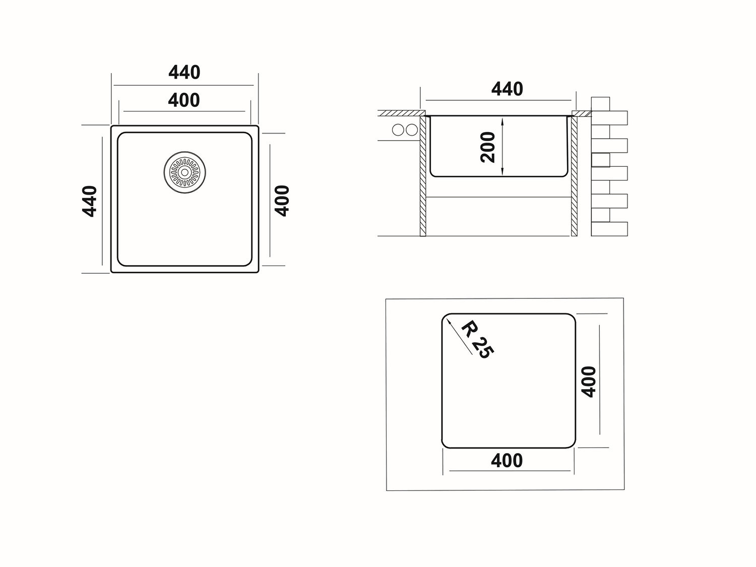 Кухонная мойка Лофт LOB400.400 подстольного монтажа производится из нержавеющей стали AISI 304 с содержанием хрома 18% и никеля 10%, что придаёт изделию превосходные прочностные свойства, устойчивость к окислению и к повышенной температуре. Материал не содержит вредных примесей тяжелых металлов, безопасен для применения в пищевой промышленности. Мойка выполнена в классическом стиле прямоугольной формы - востребованный дизайн пользуется большой популярностью, что позволяет удачно вписать модель в любой современный кухонный интерьер.Отличительными особенностями мойки LOB400.400 являются радиусы скруглений углов чаши (R25) и плоский кант, который не выступает на поверхности столешницы, что придает общему виду зоны мойки дополнительной эстетики. Вместительная чаша глубиной 200 мм позволяет свободно и с комфортом использовать мойку даже при мытье крупногабаритной посуды. Чаша оборудована переливом для воды и большим выпускным отверстием 90 мм. Мойка Лофт изготовлена цельнотянутым способом. При таком методе производства мойки изготавливаются из цельных листов стали которые помещают в пресс-форму и получают готовые изделия без швов, что делает их более привлекательными. Изделие имеет плоский край, который не выступает на поверхности столешницы, что придает общему виду зоны мойки дополнительную эстетику. Матовая поверхность LOB400.400 достигается применением брашинга (шлифование специальными щётками), благодаря чему на такой поверхности не будут видны маленькие царапины, возникающие в процессе длительной эксплуатации и изделие не потеряет привлекательность внешнего вида. Толщина стали мойки Лофт составляет 1 мм, что делает её более надежной и долговечной.Возможна установка врезным способом. Крепления для врезного монтажа приобретаются отдельно.