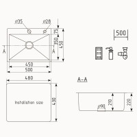 Кухонная мойка Ulgran Steel 500x450, черная брашированная сталь