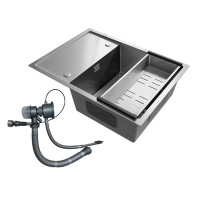 Изделие имеет богатую комплектацию, состоящую из коландера из хирургической стали марки AISI 304 и высококачественной сливной арматуры с клапан-полуавтоматом, а также с отводом под стиральную машину.