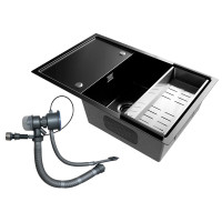 Изделие имеет богатую комплектацию, состоящую из коландера из хирургической стали марки AISI 304 и высококачественной сливной арматуры с клапан-полуавтоматом, а также с отводом под стиральную машину.